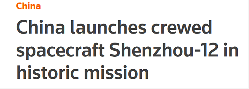 但报道同时提到,“中国成功发射神舟十二号载人飞船,这是中国五年来首次载人航天任务,进一步加速了中国与美国竞争的太空计划。”文章回溯了中国十几年来的载人航天发展经历,称中国的目标是到2030年成为世界主要航天大国,“把太空变成中美竞争的最新领域”。