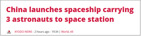 《华盛顿邮报》也称,中国成功将首批航天员送入空间站,是美国一些官员所谓的“中美新太空竞赛”中迈出了一大步。