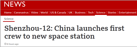 路透社在标题中使用了“历史性任务”的说法,BBC则形容,这次神舟十二号发射及后续的任务,“再一次展示了中国在太空领域不断增长的自信和能力”。