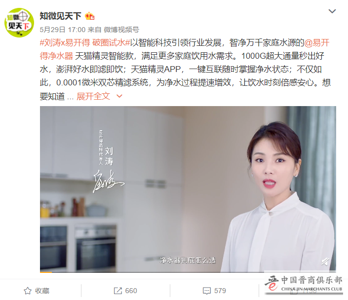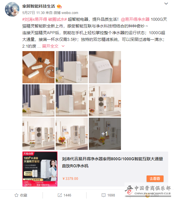 不久前,易开得于5月29日官宣刘涛出任品牌形象代言人,并共同推出净小白1000G天猫精灵智能款净水器。