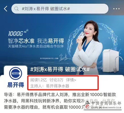 后疫情时代,消费者对于饮水健康有了更多的关注,本次易开得在微博平台全线引爆#刘涛 x 易开得 破圈试水#的话题,热度迅速朝亿级攀升。在这几天时间里,通过网友的分享,我们感知到消费者对于饮水的认知有了质的飞跃,从安全水到健康水,大众视角下定义“一杯好水”的标准在逐步改变。