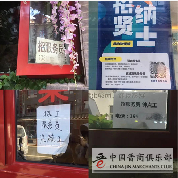 高碑店餐馆饮料店招聘服务员字样 摄 / 深燃