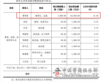 《草案》显示,董明珠在本次员工持股计划中,拟认购股数上限为3000万股,拟出资金额上限约为8.30亿元,占本次员工持股计划的27.68%。