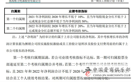 格力电器表示,第一个考核归属期届满,若公司业绩考核指标不达标,则递延至第二个考核归属期合并考核。若第二个考核归属期届满后,公司业绩考核不达标,将由管理委员会决策处置,包括注销或由择机出售股票等,将以处置所获金额为限,返还对应持有人缴纳的原始出资额,剩余收益(如有)返还公司。