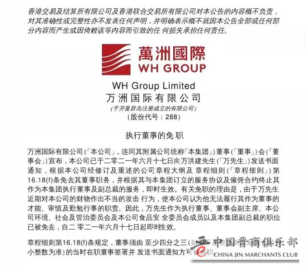 但是到了2021年6月17日,万洲国际发布公告,宣布免去万洪建包括董事会副主席、副总裁、执行董事在内的所有职务。公告显示,罢免其职务的原因是“对公司财产做出不当攻击行为,公司认为他无法履行其作为董事的才能、审慎及勤勉行事的职责。”