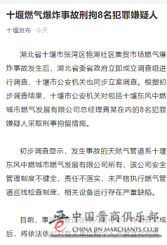 此前,湖北省十堰市公安机关根据初步调查结果,对包括十堰东风中燃城市燃气发展有限公司总经理黄某在内的8名犯罪嫌疑人采取刑事拘留措施。