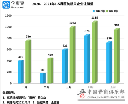 数据显示,今年1-5月共新增4361家医美相关企业,同比增长53%。