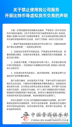支付宝官方微博发布声明称,将监控排查涉及虚拟货币的交易行为,一经发现将立即封堵。加强交易环节风险监测,严禁虚拟货币转账交易。