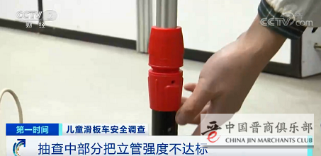 检测人员告诉记者,与其他儿童滑行类工具不同,绝大多数的玩具滑板车,都有一个可以调节长度的把立管,以适应不同身高儿童的需要;把立管调节长度后,通过这种锁定装置,对调节好的长度进行固定。