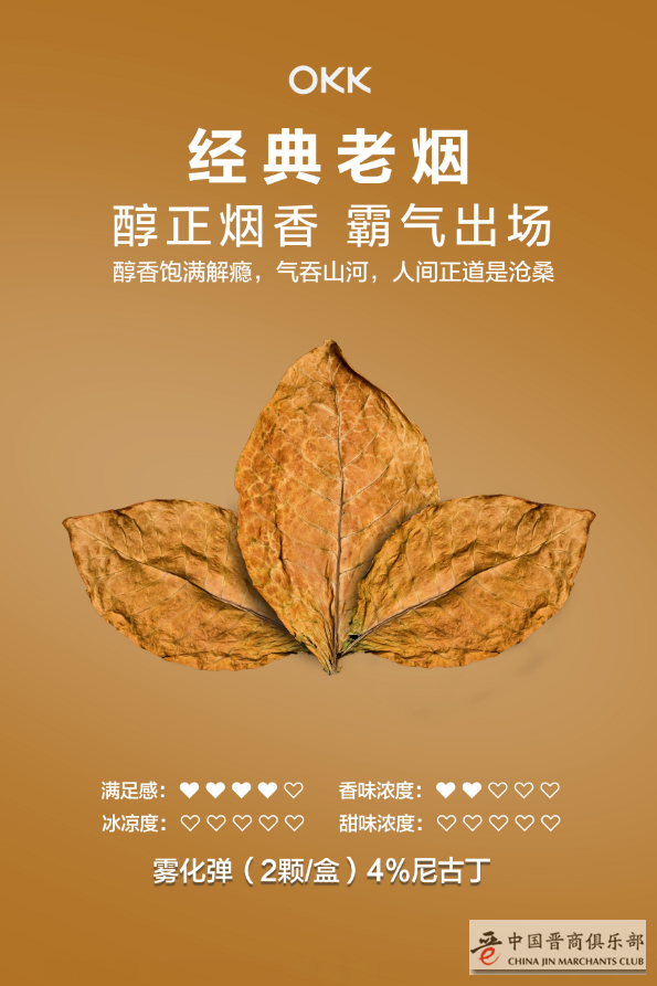 OKK的这款“经典原味”口味,让广大的烟民找到了熟悉的感觉,能够更加自在愉悦友好的过渡到使用电子烟。