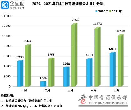 数据显示,2020年1-5月共新增4.92万家教育培训相关企业,同比增长115%。一月注册量达8442家,同比增长61%。二月、三月注册量分别为5755家和1.27万家;四月注册量近1.2万家,环比下降6%,同比增长109%。五月注册量略有下降,达1.04万家,环比下降12%,同比增长51%。