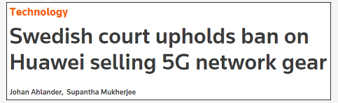 去年10月,华为被瑞典政府禁止参与5G频谱拍卖活动,对于这项不公决定,华为公司提起了上诉。当地时间6月22日,斯德哥尔摩行政法院对此案作出判决,驳回华为上诉,判定瑞典政府的决定并不违法,即维持了这项“华为5G禁令”。