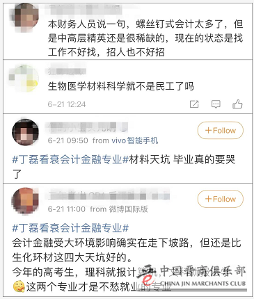 对于该观点,有会计专业人士表示部分赞同,但材料和生物医学的网友则吐槽自己的专业是“天坑”。