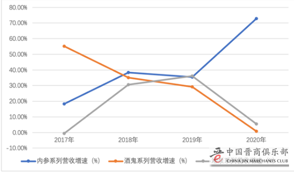 不过,值得注意的是,2018年至2020年,其内参系列增速虽保持“高增”,收入占比由20.59%增至31.34%,但收入更多来自于省内市场,内参系列的全国化进程或未完成。另外,该公司酒鬼系列收入虽由7.88亿元增至10.14亿元,但同比增速却为35.06%、29.19%、0.82%。数据显示,2020年,酒鬼系列的增速明显与内参形成高反差。