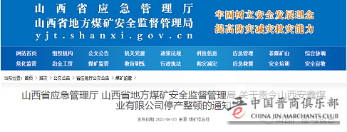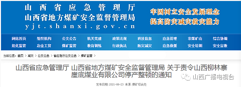 6月23日,山西省应急管理厅、山西省地方煤矿安监局“关于责令事故煤矿停产整顿的通知”公开发布,具体如下。