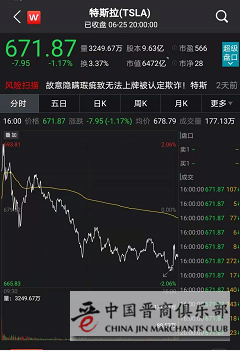 受此消息影响,6月25日特斯拉股价承压,全天震荡下跌,收盘跌1.17%。