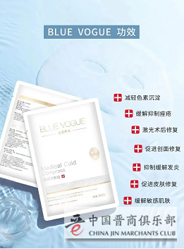 在商会成立七周年庆典中,中国美业知名专家、商会会员温蓝老师,为大家带来了自主研发的温蓝时尚BLUE VOGUE医用冷敷面膜。这款面膜由专业医疗团队联手资深美业名师反复试验,按照医疗器械标准生产,经过严格质检,质地轻盈、属于修复型、有补水淡纹、紧致抗衰的功能。198元/盒(28ml*5片)。