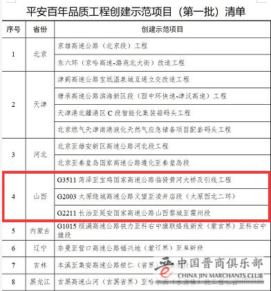 日前,交通运输部办公厅公布了“平安百年品质工程创建示范项目(第一批)清单”,在全国共选出87个公路水运工程在建项目,我省临猗黄河大桥、黎霍高速、太原西北二环项目位列其中。