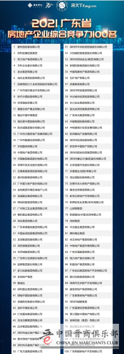 2021广东省房地产企业综合竞争力前100名