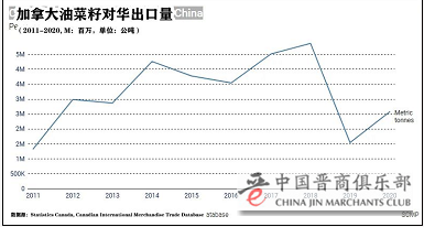 该理事会表示,加拿大对中国的油菜籽出口从2018年的22.7亿美元下降到2019年的6.5亿美元。2020年,出口额回升至11.3亿美元。