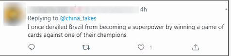 另有网友打趣说,他曾经在打牌时赢了一位巴西冠军,“这让巴西失去了成为超级大国的机会”。甚至有人开始怀疑,这到底是不是“洋葱新闻”?