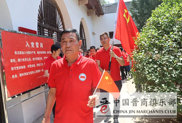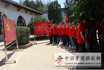 在纪念馆内,全体党员面对党旗举起右手,重温入党誓词,进一步增强党性观念,增强为共产主义而不懈奋斗的决心。