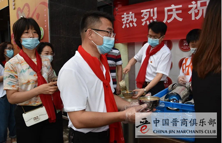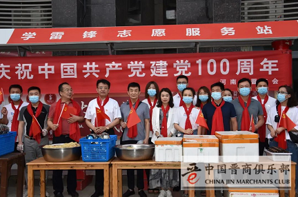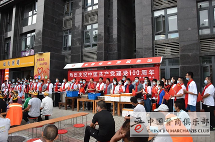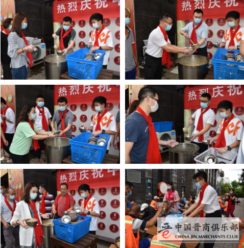 2021年7月1日的清晨,天空刚刚露出鱼肚白,郑东新区显得格外宁静、纯洁、美丽 。在伟大的、光荣的、正确的中国共产党成立100周年之际,河南省晋商会(中国晋商俱乐部联合发起机构)党支部书记、会长郭启文,轮值会长窦小刚,常务副会长李金泉、张俊平,秘书长张佛廷,党支部副书记韩建华,副秘书长崔丽媛以及党支部委员连冠、理事张帅帅、郭艳枫、罗国安等一行近二十人,来到位于郑东新区如意西路的“姓氏爱心粥铺”,举行专场捐赠活动,为20多位环卫工人过生日,送上我会全体党员、全体会员对他们的深深祝福!并对环卫工人、农民工、保安、保洁人员以及社区行动不方便人员奉献一片爱心。