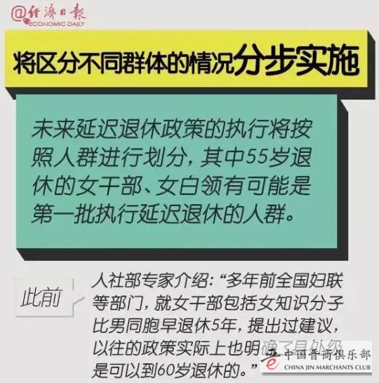 二是区分对待,分步实施。不是对所有社会群体同时实行延迟退休,我们会选择现在退休年龄相对偏低的群体,从这部分群体开始逐步实施。