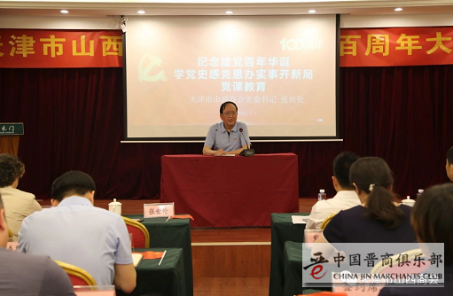 2021年7月1日,天津山西商会(中国晋商俱乐部联合发起机构)隆重举行主题为“建党百年铭史册 砥砺前行续辉煌”大会,庆祝中国共产党成立100周年,向党的生日献礼。同日,还召开了商会第五届五次理事大会。商会所属各党支部负责人、党员代表、会员企业负责人等近百人出席了本次大会。商会党委书记张世伦为大家上了一堂生动的党课。商会党委副书记、会长张爱梅做党委和商会工作报告。
