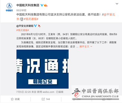 对此,7月5日深夜,中国航天科技集团转发并再次回应张陶打人事件:坚决支持公安机关依法处置,绝不姑息。