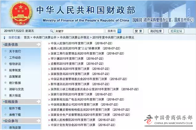 7月22日,伴随着文化部、财政部和国资委等部门在门户网站集中亮出决算账单,2015年度中央部门决算公开如约而至。今年是中央部门决算公开的第六个年头。