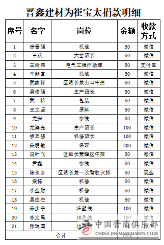 2021年7月,聚义集团组织全体员工为鑫辉源煤业患病职工崔宝太进行了献爱心捐款活动,谱写了一曲爱的乐章。