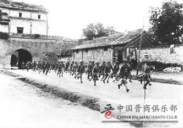驻守宛平城的中国军队奔赴卢沟桥抵抗日军。