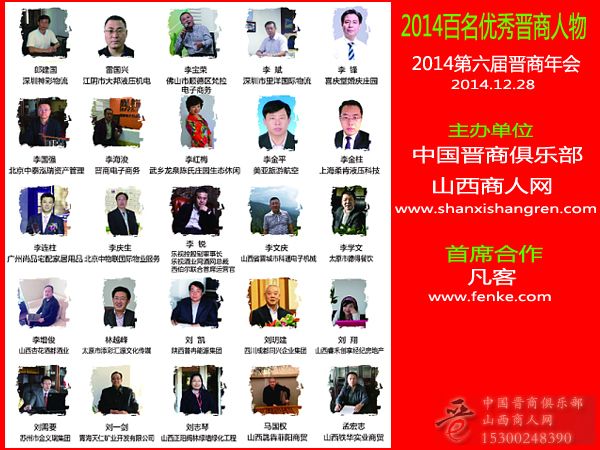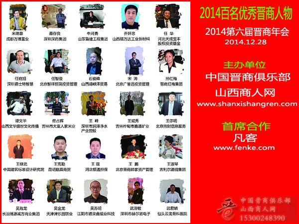 - [晋商资讯] 2014百名优秀晋商人物榜单 (2014-12-30 13:34:08)