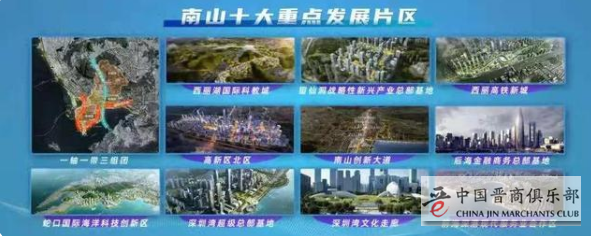 《规划纲要》公布了十大重点发展片区,分别为西丽湖国际科教城、留仙洞战略性新兴产业总部基地、西丽高铁新城、高新区北区、南山创新大道、后海金融商务总部基地、蛇口国际海洋城、深圳湾超级总部基地、深圳湾文化走廊、支持前海深港现代服务业合作区发展。