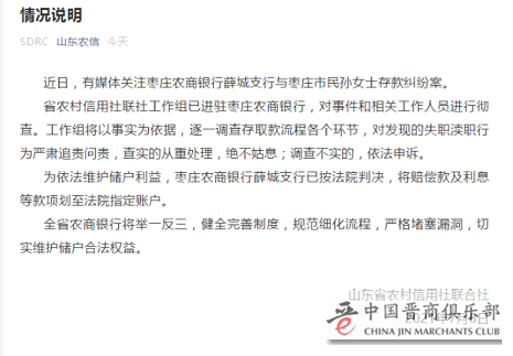 据山东农信微信公众号消息,近日,有媒体关注枣庄农商银行薛城支行与枣庄市民孙女士存款纠纷案。