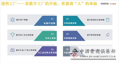 只有数字化才能真正实现“透明”,以工厂的数字化为基础,辅以“透明商业”的理念,提升“人”在商业过程中的体验,详细参见“透明工厂——智能制造新样本(方法纲要)”。