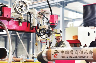 “锅炉膜式壁又称膜式水冷壁,用管子和扁钢焊接组成管屏,再由多组管屏组合在一起,形成膜式壁。膜式壁大多用在水管锅炉中,具有结构简单、节省钢材、保温和气密效果更好等优点。”在膜式壁生产线旁边,工作人员告诉记者,“我们这套膜式壁生产线采用了更先进的技术,让产品运输、安装都十分简便,用户现场安装量大大减小。”
