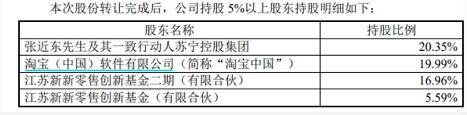 苏宁易购称,除张近东与苏宁控股集团一致行动人外,股份转让完成后上述持股5%以上股东不存在一致行动安排;股份转让后,公司任一股东均无法单独控制股东大会和董事会。因此,股份转让后,公司将处于无控股股东、无实际控制人状态。