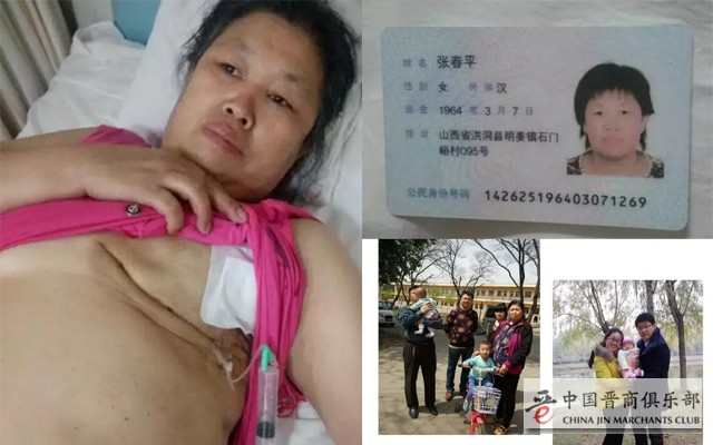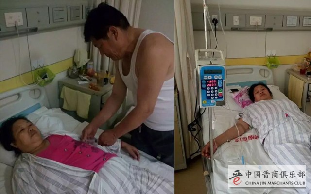 为了能给他们的母亲尽快治疗,两个儿子当即拿出所有在外打工的积蓄给他们的母亲交医疗费用,之后在山西肿瘤医院做手术。因病情紧急于2016年元月29日在山西省肿瘤医院进行第一次手术,因经济条件有限,术后正值春节,就回家调理,于2016年2月17日再次入住山西省肿瘤医院,并做术后的各项检查。因医生说老伴病情比较严重需要及时术后化疗,于2016年2月21日接受第一次化疗。因化疗药物副作用较大,用药后老伴白细胞降低至危险水平线,采取了隔离治疗。化疗造成的副作用导致老伴身体无力,吃不下饭,头发大把大把的脱落。老伴遭受着精神和身体的双重折磨。我恨不能代替她承受,伴随着一个周期又一个周期的化疗,老伴的身体渐渐不如从前,白细胞下跌非常厉害,需要注射增白针才能保证老伴正常的免疫能力,老伴也是积极的在与病魔作斗争,对治疗也充满着信心。可是好景不长,在2016年4月1日即将接受第三次化疗前的检查结果出来后医生通知我,说老伴的肿瘤有复发的迹象,仿佛噩耗一样在我脑中盘旋。为什么老天会对我们如此不公平,在2016年5月6日又进行了一次大型手术,切除了全部乳房,并进行了化疗。但21天后再次检查发现在妻子的伤口周围上表皮处有癌细胞的扩散。