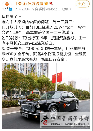 网上流传的一则T3内部动员截图显示,T3领导层认为这是“千载难逢的发展机遇”,要求员工“实行007(全月无休)”,“公司经管层紧急会议决定,T3出行紧急调整开城计划,本月内要连开15城,日均单量突破百万,牢固树立中国网约车第二地位,今天起全员开启战斗模式!”