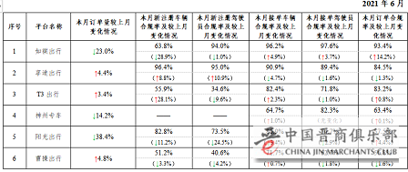 综合“交通运输部”微信号7月10日消息,全国网约车监管信息交互平台统计结果显示,截至2021年6月30日,全国共有236家网约车平台公司取得网约车平台经营许可,较2020年的214家增加了10.3%;全国网约车监管信息交互平台6月份共收到订单信息70146.0万单;其中,订单量超过30万单的网约车平台有13家。