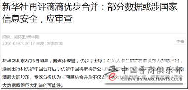 2016年新华网就滴滴合并刊发评论:部分数据或涉国家信息安全,应审查