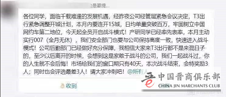 这段话据称是T3安全部的老大在内部的发言,要求开启“全员战斗模式”。