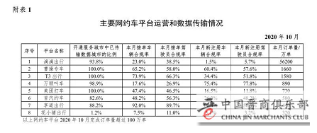 主要网约车平台数据传输情况部分截图(按订单合规率排序) 图源交通运输部