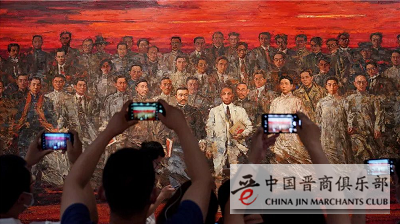 参观者在中共一大纪念馆内拍摄油画作品《星火》(6月6日摄)。新华社记者 刘颖 摄
