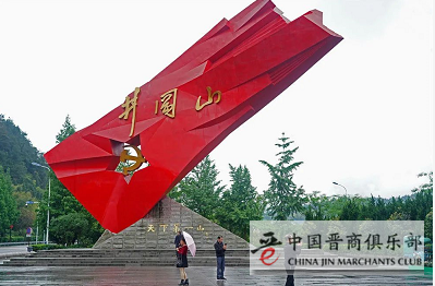 游客在江西井冈山“井冈红旗”雕塑前参观、拍照(4月27日摄)。新华社记者 万象 摄