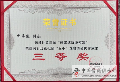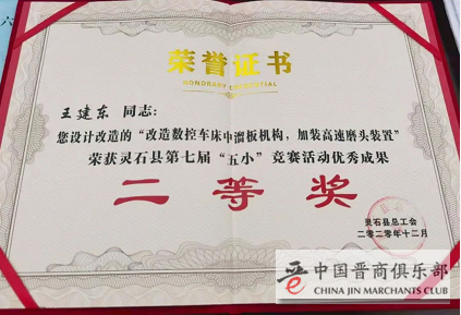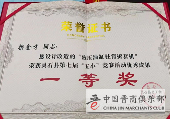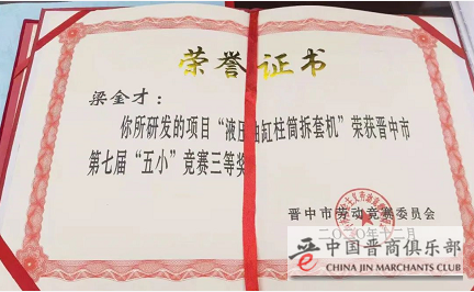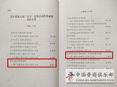 会上,县总工会为山西聚义实业集团有限公司工会委员会颁发《灵石县2021年“五小”“六有”标杆单位》荣誉牌匾,对朱明敏职工创新工作室、王超职工创新工作室进行了授牌,表彰聚义集团德源公司梁金才同志研发项目“液压油缸柱筒拆套机”荣获2020年晋中市第七届“五小”竞赛三等奖,表彰2020年灵石县“五小”竞赛获奖选手(30项):聚义集团德源公司梁金才同志设计改造“液压油缸柱筒拆套机”荣获一等奖;聚义集团英瑞克公司王建东同志设计改造“数控车床中溜板机构,加装高速磨头装置”荣获二等奖;建材研究院李海燕同志设计改造“砂浆试块脱模器”荣获三等奖。