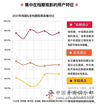 2020年情况特殊,疫情后出现报复式观影潮,年轻观众们曾回到过电影院,复工后最近的档期即为2020年暑期档,当时24岁以下观影人群占比由2019年同期的29.5%暴涨至39.4%,但随后占比在2020年国庆档、2021年春节档再接连下滑,直到2021年五一档,占比又明显回升,不过也是这一次,猫眼研究院解析指出,年轻人集中在档期看电影的趋势更为显著。
