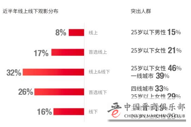 在内容的播放渠道上,线上视频以其便捷性,分走了一部分对大银幕没有追求的观众。一个可以参考的数据是,2018年、2019年、2020年近三年观众平均观影频次分别为3.06、2.88、1.73次,频次明显下降。猫眼数据对观影人群进行分析,尽管首选线上观影的人群没有线下的多,但首选线上的人群里,25岁以下年轻观众明显居多数。
